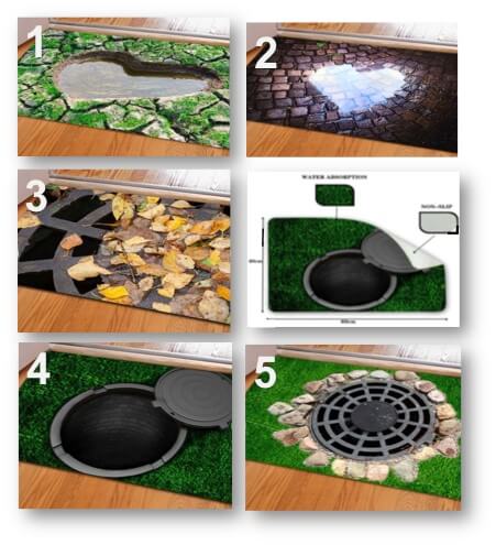 3D Felpudos 40 * 60 cm. Para la entrada de tu casa. Moda 3D trampa impresa. Adaptable a cualquier lugar de tu hogar.